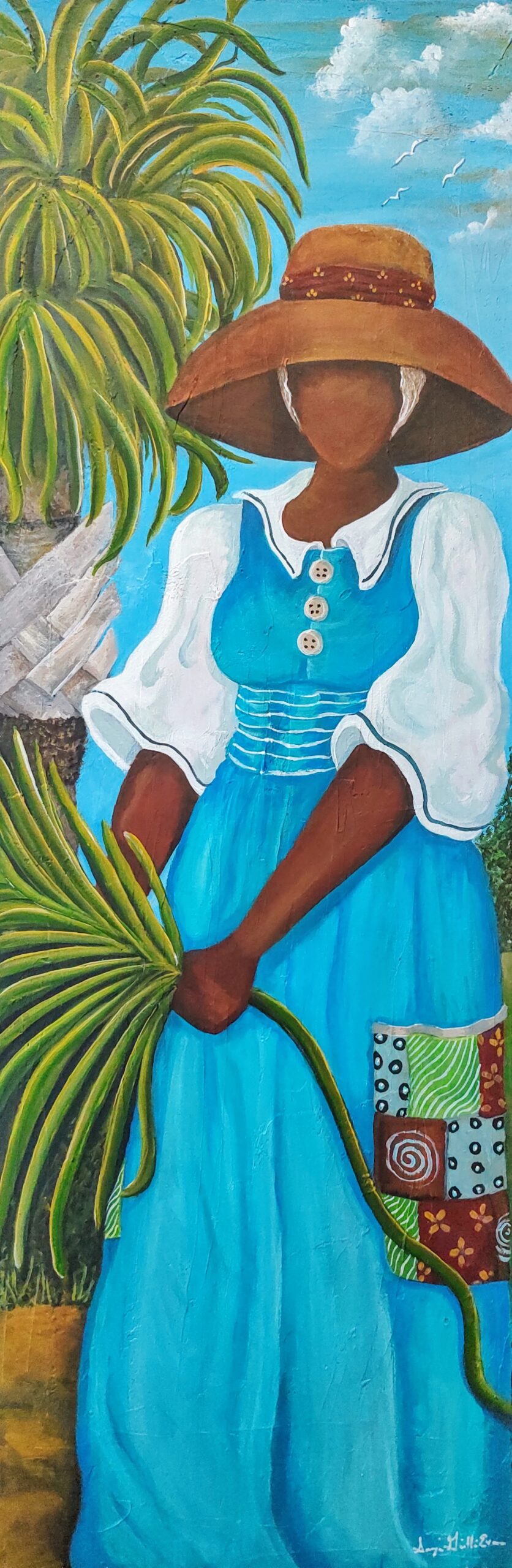 As a prolific mixed media artist, Sonja incorporates tin, wood and other materials in her art, while using rich vibrant colors on canvas, which are indicative of what has been acknowledged as the traditional Gullah style. In both mediums, she is careful about how she expresses her culture, so that it is represented in its purest form.